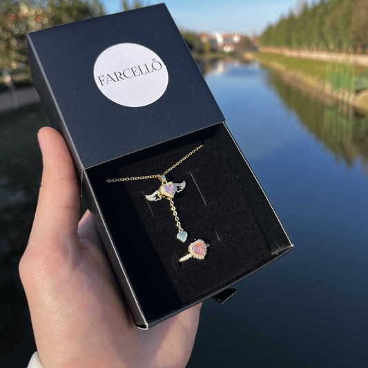 Kalp ve Kılıç Çift Kolye Seti (2 adet kolye içermektedir)